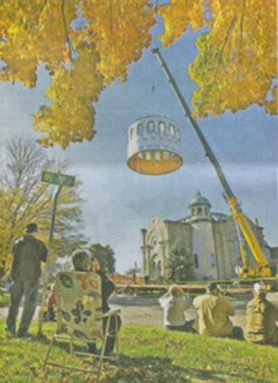 from All Saints Church to watch as the drum of the dome was lifted.